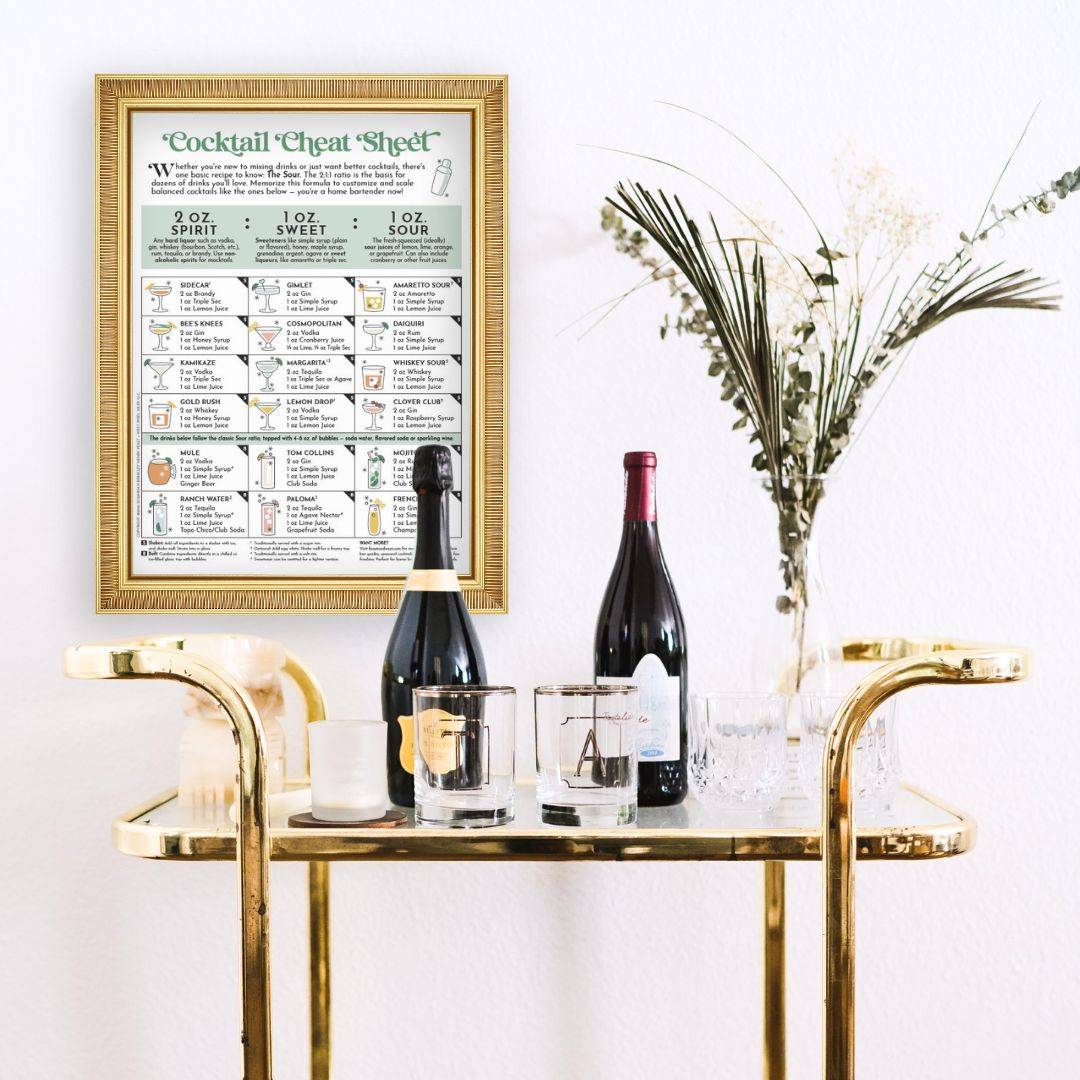 Keep this 1-page cocktail cheat sheet by your home bar or on the fridge to help you make easy, perfectly balanced drinks.