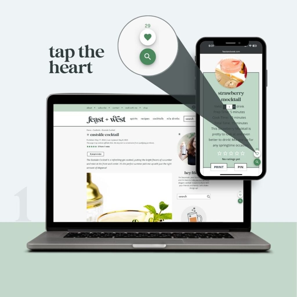 Planning a party or just collecting drinks to try later? The little green heart 💚 in the lower-right corner lets you save recipes you love so you can find them fast! In this guide, I explain step-by-step how it works, help you troubleshoot issues and share my favorite tips and tricks.